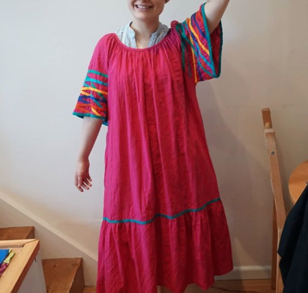 There were a couple that could have won this category but Helen of @52_dresses made this amazing skirt for Tasneem of @idylltryst out of a dress and we just love the fun use of color and drafting!